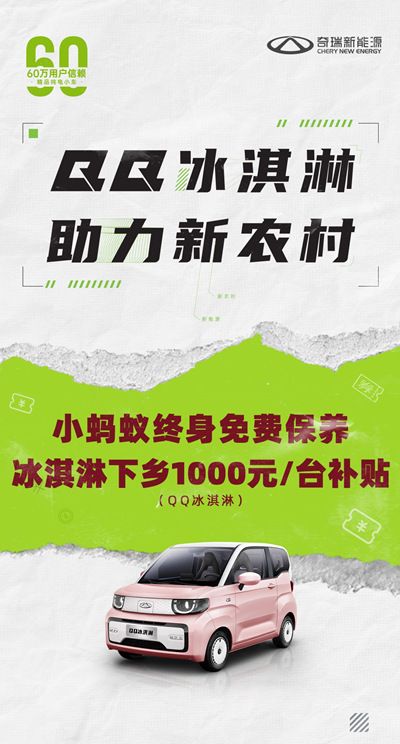 奇瑞新能源助力乡村振兴 购奇瑞QQ冰淇淋享补贴 还有多重优惠好礼