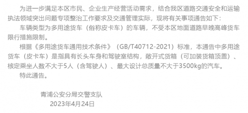 如今,青浦区在此基础上对皮卡通行权限做了进一步明确和放宽,即使在早晚高峰皮卡也可以自由通行,有力推动了皮卡解禁的迈进。这也说明了在国家推动皮卡解禁的背景下,皮卡的乘用化、多用途属性得到了管理部门的认可,青浦区的这一动作,也有望带动上海更多区域加入皮卡解禁阵营,让一线城市解禁的范围更广。
