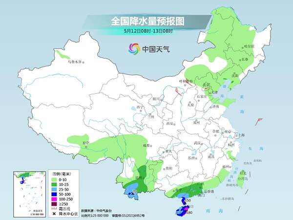 昨天,我国的降水主要集中在华南以及东北等地。监测显示,11日08时至12日06时,广东北部和西部、广西东南部、云南南部、海南岛西部和东北部等地部分地区出现大到暴雨,广东茂名和湛江、广西玉林和北海、海南文昌等局地大暴雨。