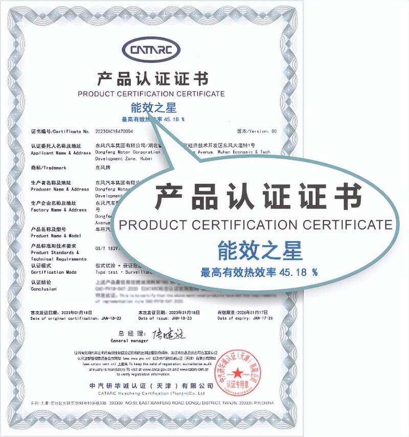 【东风全新马赫动力1.5T混动发动机及“能效之星”产品认证证书】
