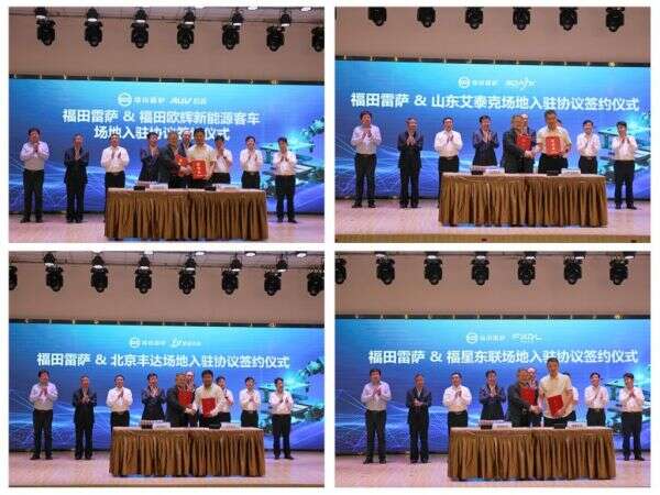 随后,福田雷萨与福田欧辉新能源客车、宣化产业基地入驻供应商——山东艾泰克、福星东联以及北京丰达进行场地入驻签约。