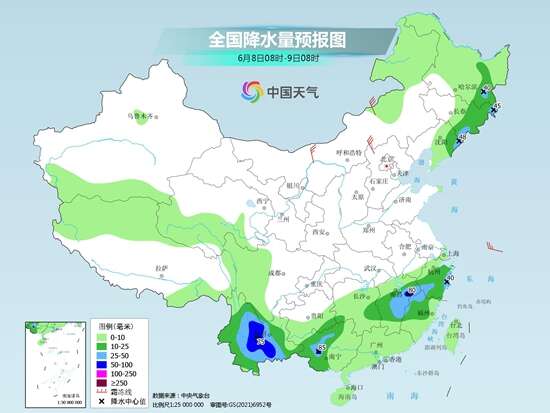 具体来看,今天,海南岛、广东西南部等地部分地区有大到暴雨,局地大暴雨;云南南部、浙江南部、福建北部、川西高原北部、青海南部、甘肃西南部、东北地区东部、内蒙古东北部等地部分地区有中到大雨,浙江南部、福建北部等地局地有暴雨。