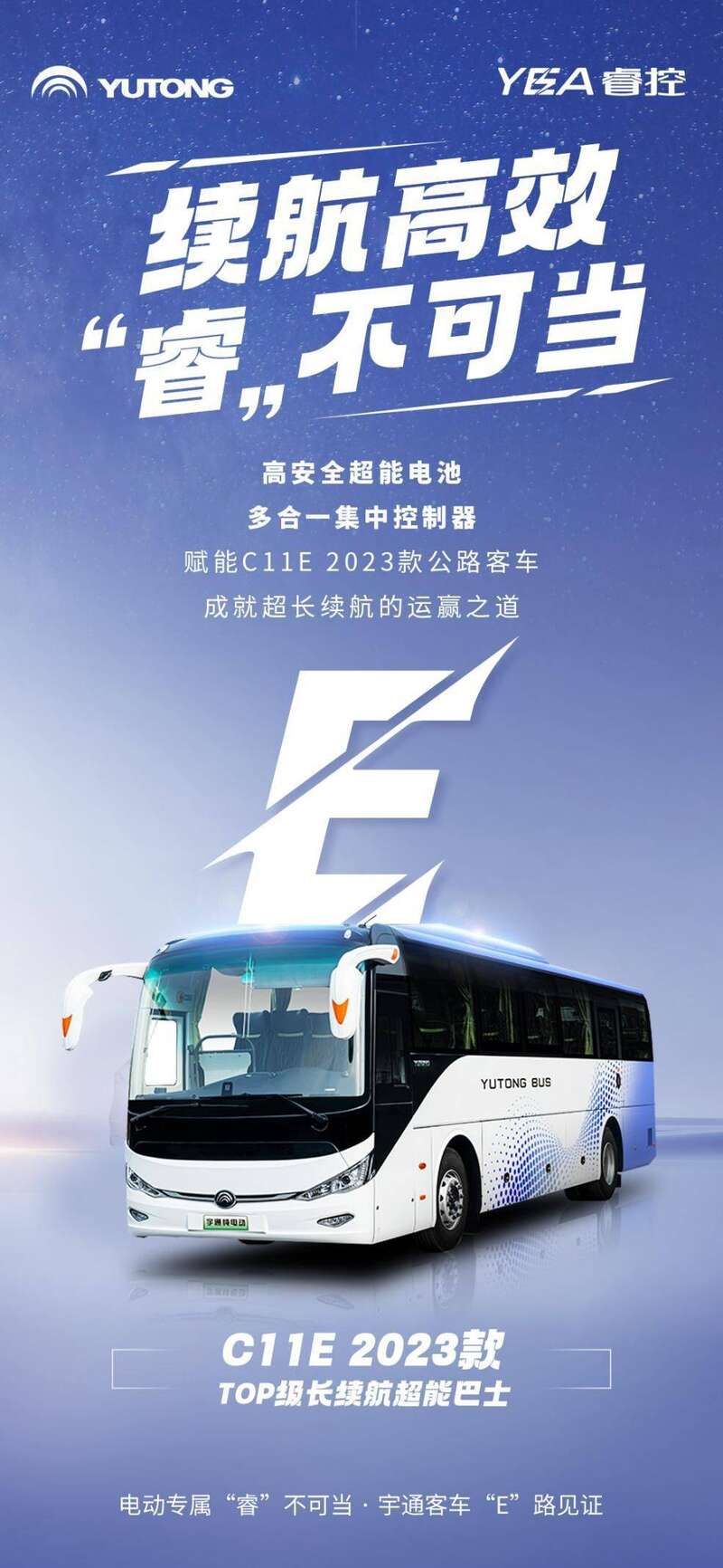 在技术应用落地上,宇通打造睿控E平台,绝对不是纸上谈兵。新近发布的TOP级长续航超能巴士C11E 2023款,首次在客车行业应用高防护等级、高结构强度的H1动力电池,体积小、重量轻、安全性高;多合一集中控制器:精准控制每一度电,综合续航提升30%。