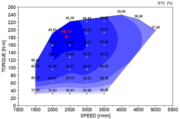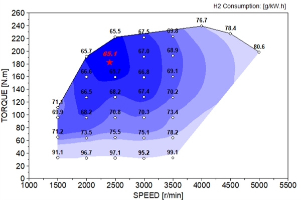 除了拥有出色的最高热效率外,这台氢内燃机更是拥有广阔的高热效率区间范围。在中等负荷和低负荷区间,热效率可达42%至45%之间。这使得它特别适合与电驱动力系统结合使用,无论是REEV、PHEV还是HEV等形式,都能充分发挥内燃机在电混系统中的高效性能。