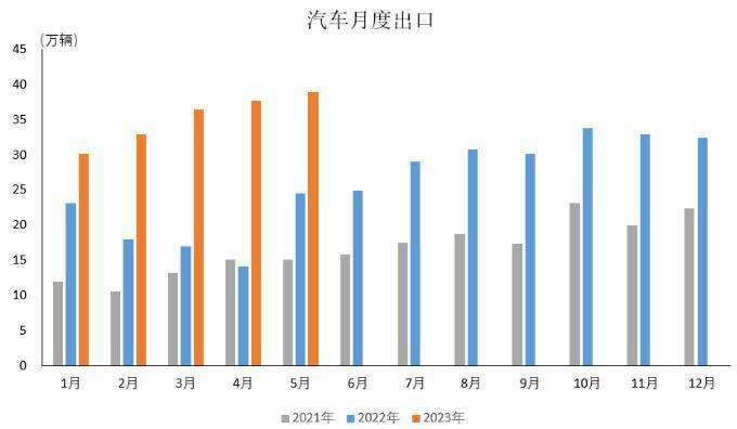 2023年5月,汽车企业出口38.9万辆,环比增长3.4%,同比增长58.7%。