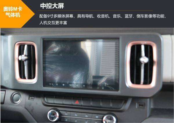 奥铃M卡气体机采用轿车化内饰,并辅以9寸高清智能中控大屏,带有导航、收音机、音乐、蓝牙、倒车影像等功能,既方便实用,又能为驾驶员带来行车乐趣。