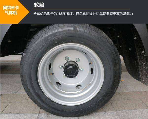 该车底盘采用国际知名品牌零部件,加上整车线束的优化布置、附件标准等一系列措施,让底盘可靠性更高。全车匹配的轮胎型号为185R15LT,双后轮的设计和单级减速的助力下,能够让车辆同时获得高动力输出和强承载性。