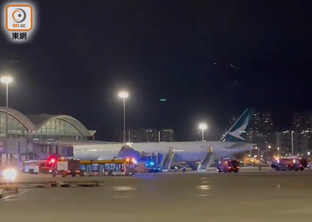 6月24日凌晨,国泰航空一架赴美飞机在香港机场疑因轮胎发生故障,中止起飞 图源:香港东网