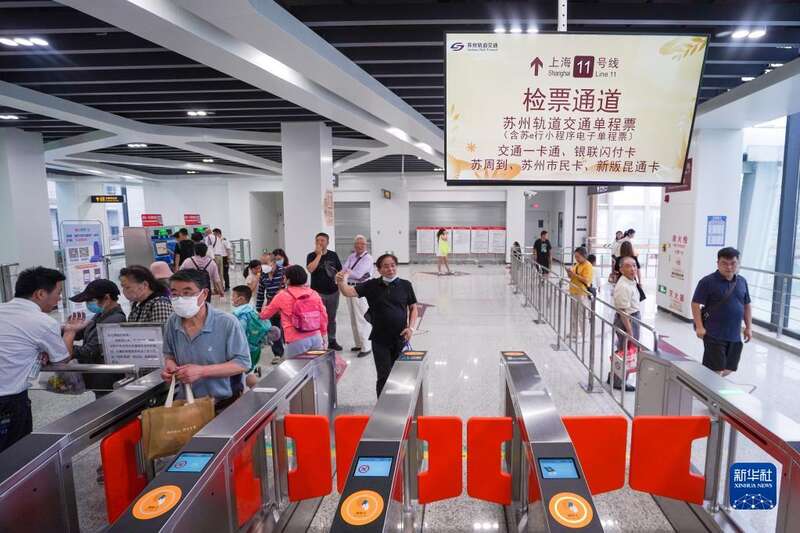 6月24日,乘客在苏州轨道交通11号线花桥站进站乘车。新华社记者 李博 摄