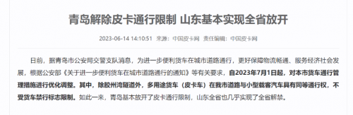 日前,青岛市公安局交警支队公布:自2023年7月1日起,除胶州湾隧道外,多用途货车(皮卡车)在青岛市道路与小型载客汽车具有同等通行权,不受货车禁行标志限制。如此一来,青岛基本放开了皮卡通行限制,山东也几乎实现了全省解禁。