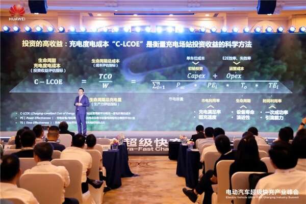 为迎接激增的电动汽车补能需求和新型能源系统结构变革,构建高质量、可持续发展的智能充电基础设施体系已迫在眉睫。峰会上,华为数字能源技术有限公司副总裁何波以《携手共建高质量可持续发展的新一代智能充电网络》为主题,分享了自己的见解:“高质量的充电基础设施应该是用户的高体验、设备的高质量、投资的高收益,华为新一代液冷超充系统,最大化满足用户日益提升的充电补能需求,拥有高可用度支持面向未来演进、提供最优的运营收益,使能充电基础设施真正成为先进生产力。”另外他还强调充电基础设施作为生产工具,其充电量由“电力利用率和时间利用率”决定,充电度电成本“C-LCOE”才是衡量充电场站投资收益的科学方法,华为全液冷超充解决方案基于充电度电成本“C-LCOE”评测高速和城市公共场站投资收益,要优于传统方案60%以上。