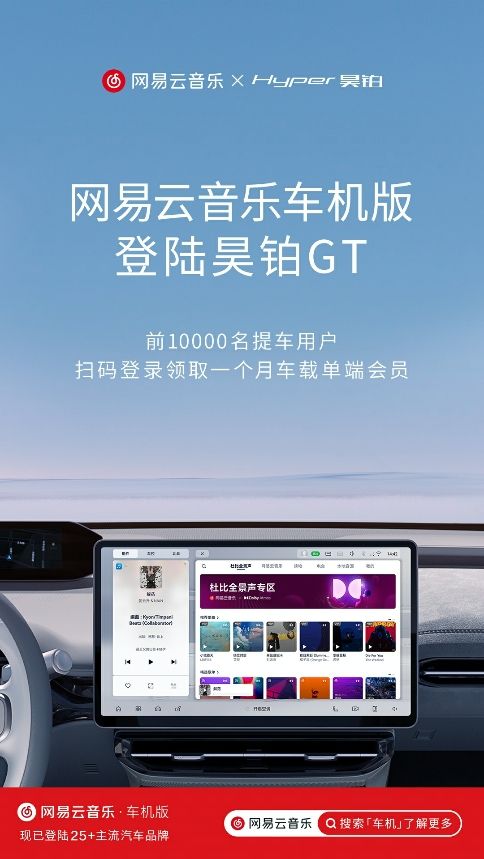 座舱内空间体验是Hyper昊铂重点打造的产品方向,具有独特的产品优势。此次,通过率先与网易云音乐这样业界领先的在线音乐平台建立起合作关系,Hyper GT能够为车主群体提供杜比全景声内容等顶级音乐资源,让所有车主都能在车内享受到最佳音乐服务。