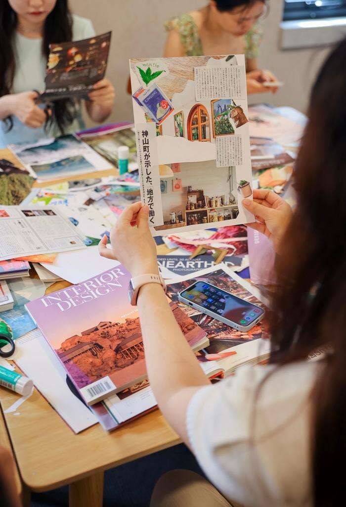 此外,“捏星星的人”设有多个面向公众的艺术活动。展览开幕式当天,艺术家花花带领大家体验旧杂志拼贴画活动,在治愈的氛围中,观众与杂志、书籍、插画为伴,尝试创意的表达方式。展览期间,围绕“秘密花园”主题,设计团队还将带领不同观众群体验手绘T恤、手绘扇子等艺术工坊。