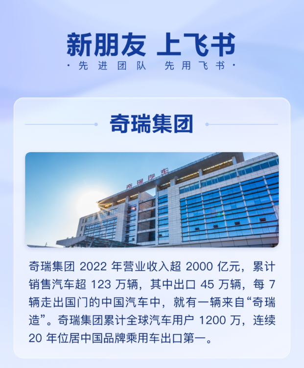 奇瑞签约飞书!中国智能造车有了数字新工具