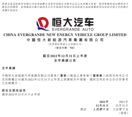 恒大汽车两年亏损840.08亿元,总负债1838.72亿元