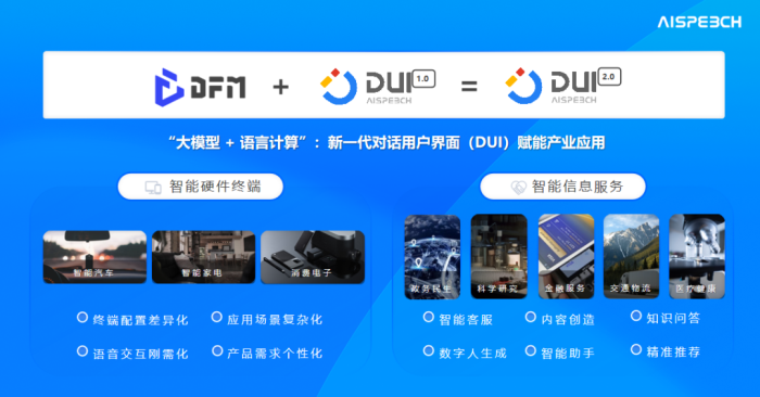 作为国内专业的对话式人工智能平台型企业,思必驰具备原始创新和应用创新的双轮驱动能力,通过将DUI平台与DFM-2大模型相结合,基于通用人工智能技术不断发展完善自身的规模化定制能力和产品标准化能力,支持客户自主构建“千人千面”的个性化语音交互解决方案,实现了人机口语对话系统的“柔性批量制造”。大模型+语言计算将作为新一代对话用户界面(DUI)赋能产业应用。