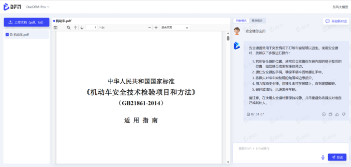 DocDFM可为用户提供知识查询服务,免去了阅读冗长的说明书的麻烦。用户可以像咨询人工客服一样咨询汽车使用过程中遇到的问题,基于DFM-2大模型的语音助手即刻给出答案。