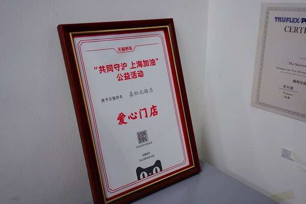 嘉松北路店曾在天猫养车“共同守沪 上海加油”公益活动中获得“爱心门店”称号