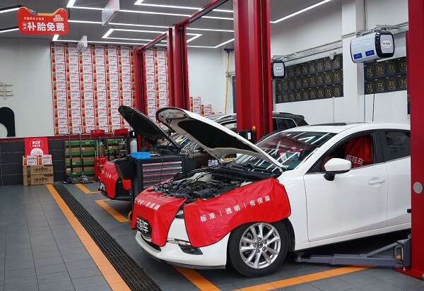 天猫养车嘉松北路店最受欢迎的项目是「小红鼻」和「四轮定位」,最具特色的是最常见的补胎。“扎钉子扎到胎侧,即使扎的角度非常刁钻,我们也能补。曾有一个用户专门驱车20公里来补胎,就是因为我们技术好。这是天猫养车的运营团队组织我们去某个大品牌工厂培训学习的。”