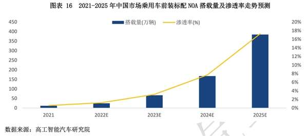 从行业来看,排名交付量前15的品牌,都已进入NOA上车阶段。下半年更多NOA搭载新车的上市,预计全年潜在(含选装配置)NOA搭载量将超过150万辆。