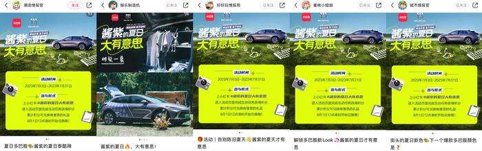 这个夏天,明媚夏日和大好风光让人们走向户外的心情冲上新高点,小红书5大官号@潮流情报官 @城市情报官 @蜜桃小姐姐 @好好玩情报局 @娱乐制造机 联合发起预热号召,卷动站内各个圈层流量,实现别克 E4全触点传播。