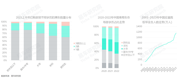 高等教育不仅普及了书本知识,也普及了用车意识,未来高学历用户将不断助推多车家庭车市