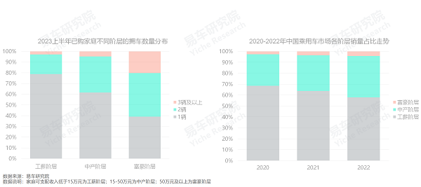中产与富豪用户的多车占比较为显著,未来中产及以上用户将不断助推多车家庭车市