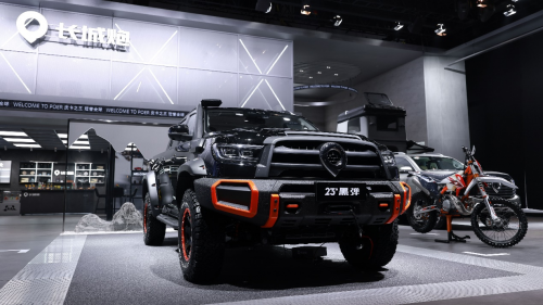 此次车展,长城炮个性化共创新品——23款黑弹焕新上市,官方指导价25.88万元,用户通过长城炮APP即可订购,首批300名下订用户,可获赠车尾防滚架。
