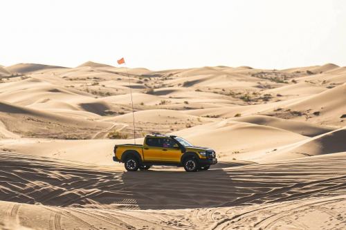 值得一提的是,作为中国越野皮卡“天花板”级别的王者座驾,山海炮性能版原厂配齐百万级越野装备,配备前后金属保险杠、与车架相连的金属侧踏、18英寸越野AT胎、K-MAN氮气减震、12500磅T-MAX绞盘等硬核装备,为用户免去上牌、上路、年检、售后的烦恼,更为此次沙海试驾,带来热血沸腾的高能越野体验。