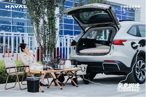 除此之外,在完成所有挑战后,哈弗还带来了家庭外出露营场景的体验,利用哈弗枭龙MAX 3.3kW外放电功能连接电器,完成紧张游戏之余,也可以在现场品尝饮品、打卡拍照,晒出朋友圈里最与众不同的周末下午茶。