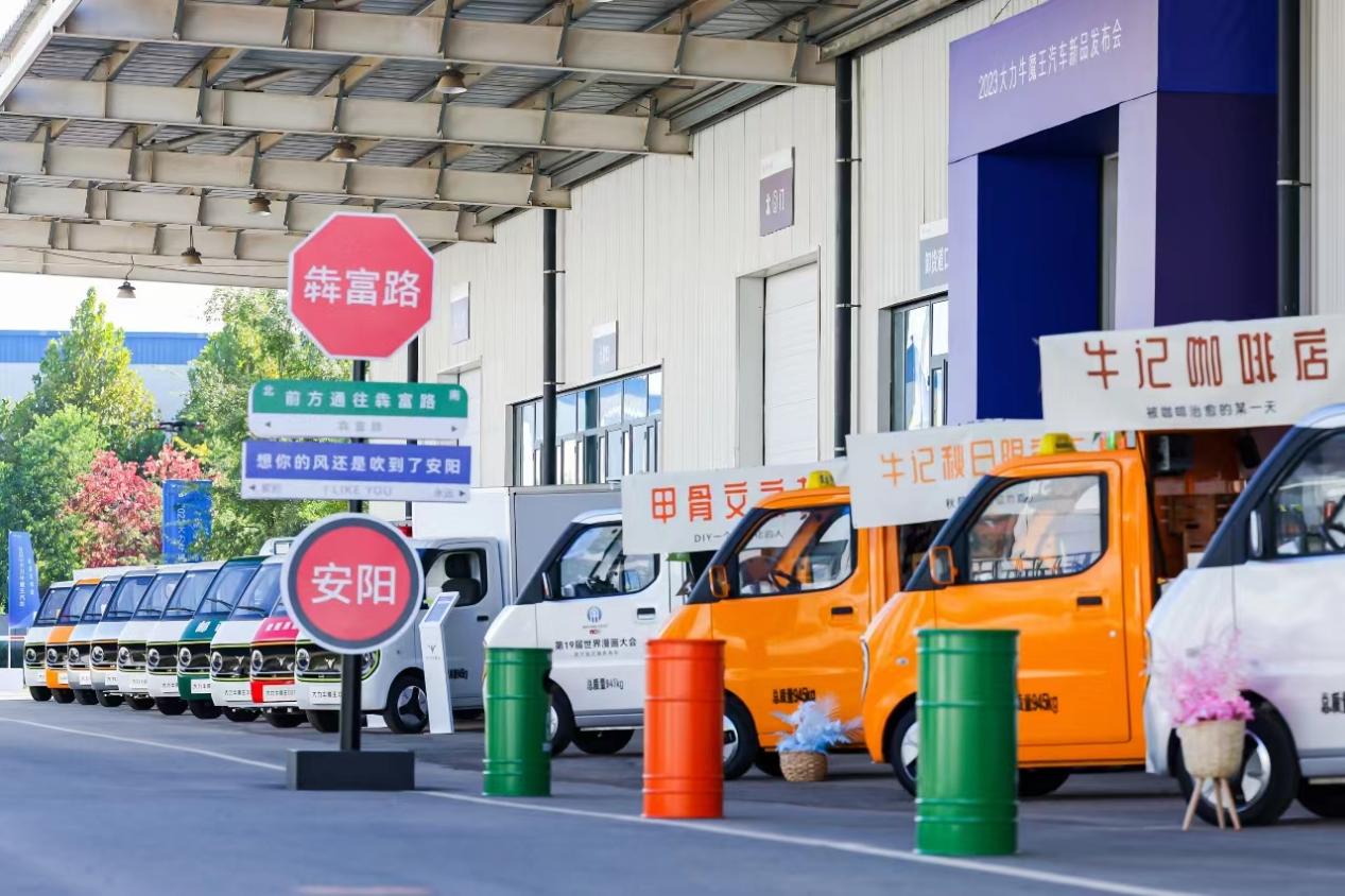 2023年10月20日,大力牛魔王汽车新品发布会成功举办,创新推出新能源微卡车型——大力牛魔王D05,市场指导价为厢式车型7.98万元起,栏板车型7.88万元起,并公布4项选装礼包和4项用户权益礼包,让用户可以根据自身需求精准选配,真正得到实惠。大力牛魔王D05聚焦最后50公里城市物流配送,多达十余种的版型,二十多种厢体,为不同场景需求,提供了更多元、更适配的极致性价比产品,并以开创性的设计,一款车型囊括了高承载力和VAN的高通过性优势,让用户总能选择一辆适合自己的车。