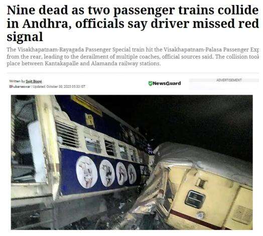 此前报道称,印度铁路是全球最大的铁路网络之一。由于硬件缺乏维护以及人为过失等原因,印度铁路事故频发。2023年6月,印度东部奥迪沙邦曾发生一起严重的列车脱轨相撞事故,造成288人死亡、1000多人受伤。