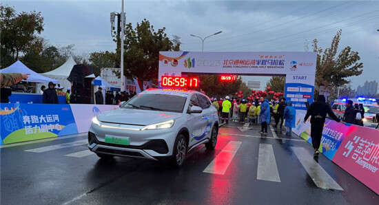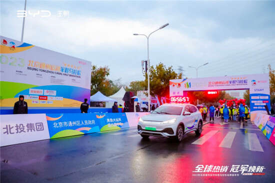 比亚迪王朝网携比亚迪元PLUS冠军版,助力2023北京通州运河半程马拉松圆满完成。
