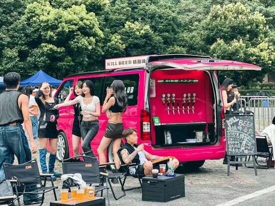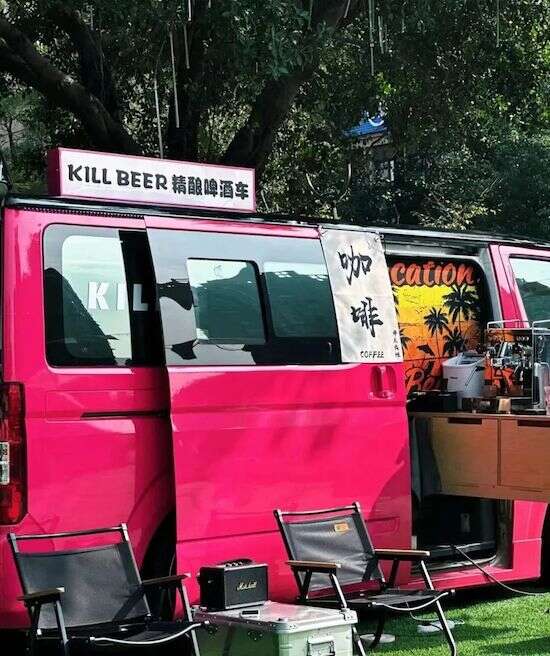 如果你在重庆的音乐节、市集或是草坪边上,碰到有一台粉红色的露营车,敞着后备厢盖冲着咖啡,穿着时尚的年轻人坐在折叠椅上品着咖啡,那大概率就是陈老师的车。露营咖啡车是他的户外流量法宝,即使在偏僻的景点,只要粉红色的咖啡车入镜,就能化身户外潮人趋之若鹜的网红打卡点。