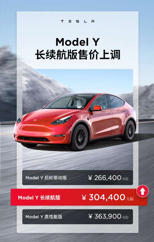 特斯拉再次宣布涨价!Model Y长续航版售价上调
