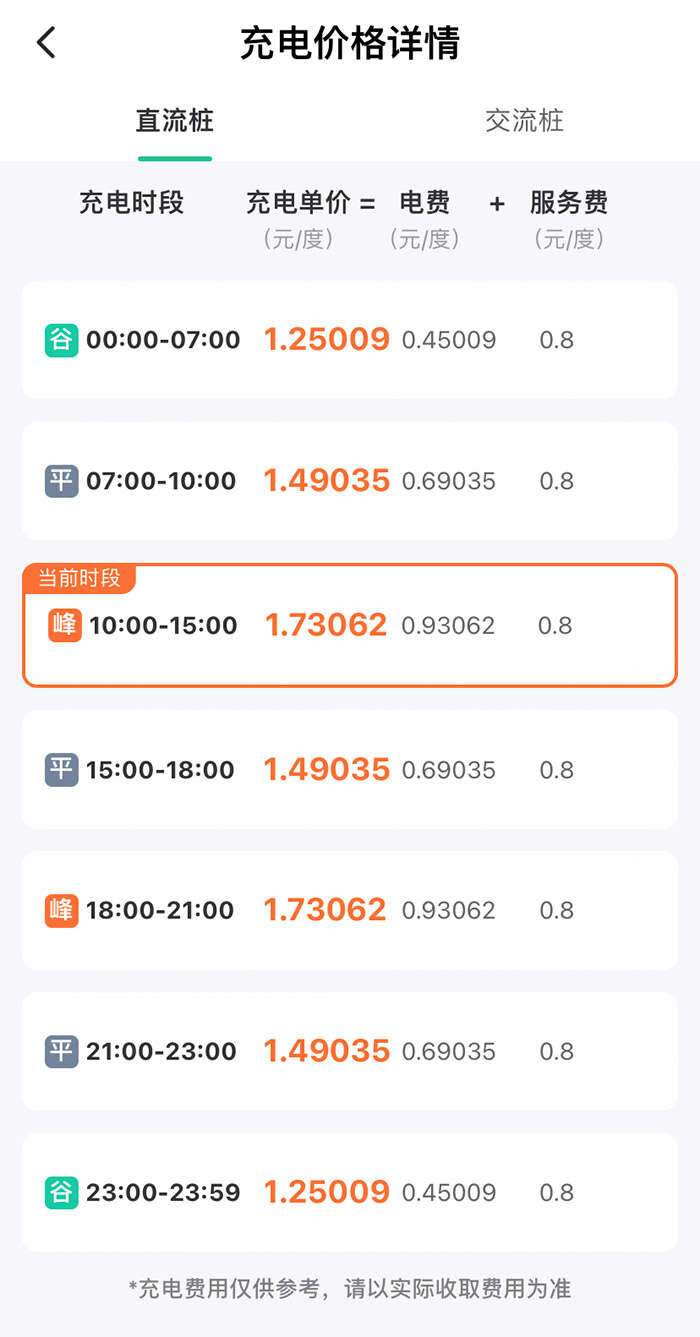 记者了解到,公共充电桩充电费用基本是由服务费和电费两部分组成。其中,电费变化比较规律,每天24小时被划分为高峰、平段、低谷等多个时段,对应不同的电价水平。而服务费则根据不同地区、不同时段、不同企业的规定进行市场化调整。