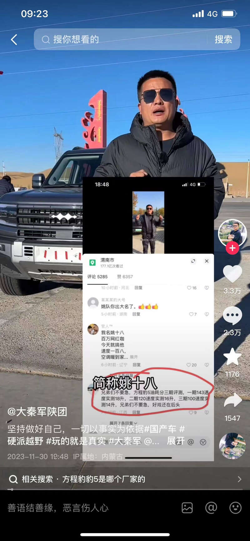 近日,有消息称,抖音大V“大秦军陕团”(姚卫强)测试了豹5的高速油耗,结果竟是百公里油耗18升。