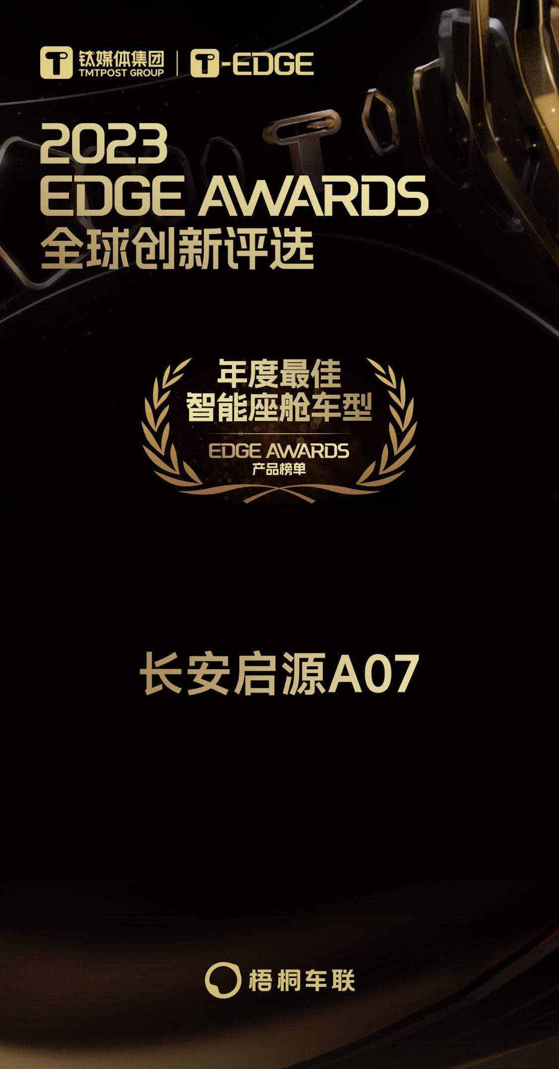 得益于卓越的设计和丰富的配置,以及梧桐车联助力打造的创新数智空间体验,长安启源A07在钛媒体2023 T-EDGE全球创新大会上成功斩获大奖,荣膺“年度最佳智能座舱车型”。
