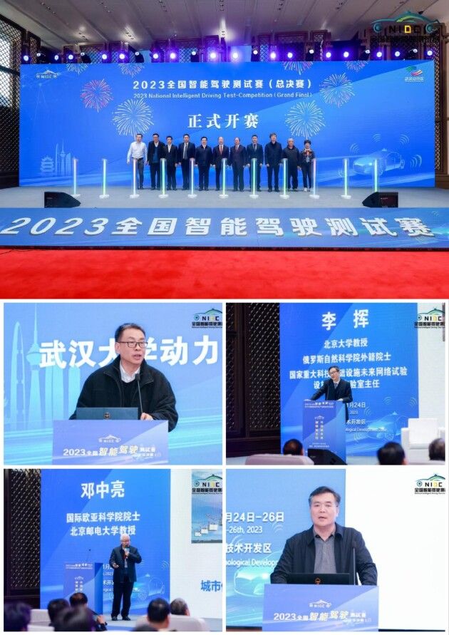 2023年11月24-26日,2023全国智能驾驶测试赛(华中赛区及总决赛)在武汉经开区军山新城举办,同期举行了隆重的开幕式、颁奖仪式以及SVTC智能电动汽车链合作交流会等配套活动。第十三届全国政协经济委员会副主任、国家智能制造专家委员会主任、工业和信息化部原副部长苏波,武汉市委常委、武汉经开区党工委书记刘子清,中国机械工业联合会党委常委、执行副会长罗俊杰,中国汽车工业咨询委员会主任安庆衡,中国汽车工业咨询委员会委员李万里,中国科学院院士、武汉大学动力与机械学院院长、工业科学研究院执行院长、微电子学院副院长刘胜,国际欧亚科学院院士邓中亮,北京大学教授、俄罗斯自然科学院外籍院士李挥,浙江清华长三角军民协同创新研究院院长、俄罗斯工程院外籍院士荣毅超四大院士及300余位有关部门领导、行业专家和学者、企业和参赛队伍、投资机构、媒体记者等出席有关活动。