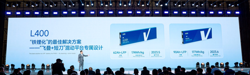 PHEV纯电续航300km电池:蜂巢能源推出的业内首款纯电续航超300km的PHEV磷酸铁锂电池,基于其短刀L400 PHEV尺寸,容量达到133Ah,带电量覆盖45kWh~55kWh,具备2.2C快充性能,可以实现20分钟充满电。据杨红新透露,该款产品将用于B级以上SUV或MPV车型。