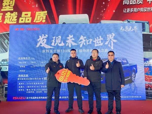 T30探险家基于新技术、新材料、新工艺、优化设计、全场景严苛试验、智能制造、五十铃IM体系管理等,缔造五十铃历史上最轻量化、最坚固的皮卡。上市活动现场, 五十铃T30探险家首批太原用户正式交付。