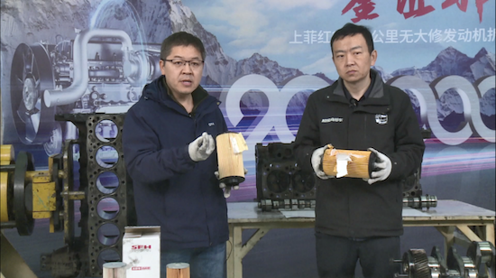 经用户介绍,此台发动机13年来坚持定期保养,使用原厂配件,从不使用劣质的配件,这也是发动机保持良好状态的原因。在直播过程中,上菲红技术专家也特别强调了原厂配件的重要性,对上菲红原厂滤芯与非原厂滤芯进行了对比分析,并着重讲解了鉴别正品的方法。上菲红坚决维护广大用户的正品权益,为用户提供具有品质保障的原厂配件,从而延长发动机的使用寿命并保持其良好的运行状态。