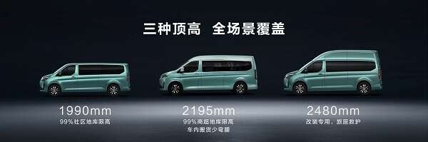 对于部分个体老板,传统大VAN存在空间过剩、灵活性不足的问题。图雅诺大V完美契合用户的诉求,在空间方面拥有5490mm的极限C照蓝牌车长和4990mm的短轴版本,还有1990/2195/2480mm三种顶高,满足99%社区地库、商超地库限高,同时在宽度方面追求极致的利用率,1750mm内宽下,外宽控制在1980mm,内保空间,外顾灵动;高顶车型行业最大内高,满足旅居、救护等专业改装,外高不超2.5米,满足绝大部分路桥限高要求。