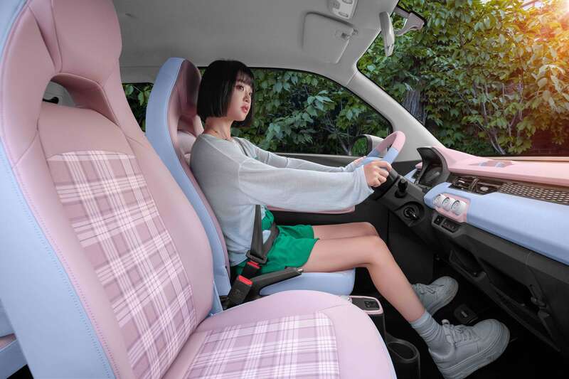 新车在香芋紫、浅藕色、薄荷绿、椰子白基础上新增龙舌蓝、榛果粽两款炫彩车身,圆润前脸横向饰条,360°微笑升级,软萌颜值可爱加倍。内饰焕新人体工程学“0”压设计、座椅适调、配备环保亲肤面料更柔软舒适,还有新增车载化妆镜,精致更悦己。另外新增205km超长续航,配备10kW快充可75min充满30%-80%,轻松满足年轻人通勤和逛街游玩需求,解锁品质出行新选择。
