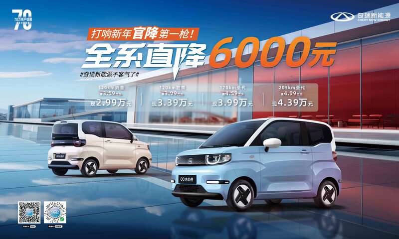 2023年12月29日,奇瑞新能源正式官宣旗下QQ冰淇淋直降6000元,价格2.99万元起。在辞旧迎新之际,面对纯电小车领域的花式“内卷”,奇瑞QQ冰淇淋一波“王炸”,直接官降让利消费者,倾情回馈广大用户的信赖与支持,真正给予用户更实惠的价格和更品质的产品,打造更高品价比的购车新选择,提供超预期的美好出行体验。