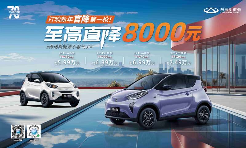 除了带来两款焕新升级的实力派纯电小车随心选,奇瑞新能源更是率先打响官降第一枪,奇瑞小蚂蚁和奇瑞QQ冰淇淋至高官降8000元,现在购车还享多重诚意好礼,将不客气进行到底!心仪爱车轻松入手,让您的年终奖带来更超值的价值享受。