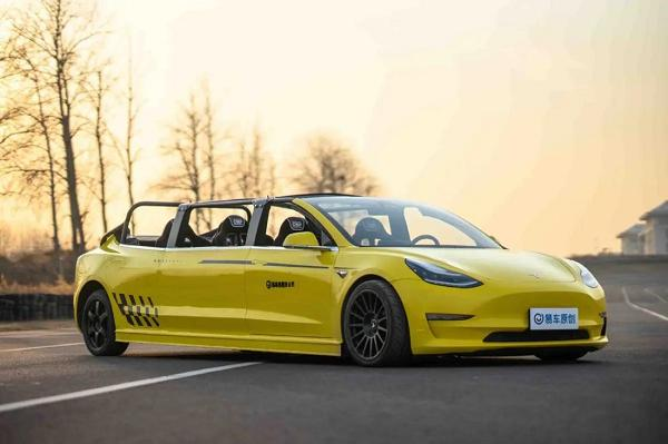 Model 3 LL号称2023年最狠的改装车,是世界最长特斯拉。这台全球唯一的6.1米车长、4.5米轴距6座model 3 performance,同款涂装重庆出租车,外观在原厂基础上加长处理,并改装桶椅和防滚架,装载能力和安全性满点,能让更多的车迷能够体验到速度带来的快乐。