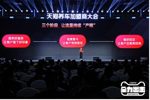加盟商大会上,天猫养车公布了2024年全新流量运营策略,整合抖音、美团、高德资源,加深平台布局,点燃流量引擎,内部以“三好”提质增效,实现流量变“留量”。