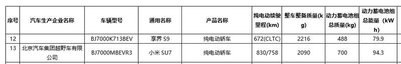 工信部发布减免车辆购置税的新能源汽车车型目录 小米SU7、智界S7等在列