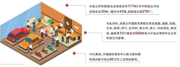 来自北京车展组委会的数据显示,本届北京车展共展出全球首发车117辆(其中跨国公司全球首发车30辆)、概念车41辆、新能源车型278个。10天展期内,中国国际展览中心顺义馆和朝阳馆共吸引观众89.2万人次到场参观,其中吸引国际观众达2.8万人次。